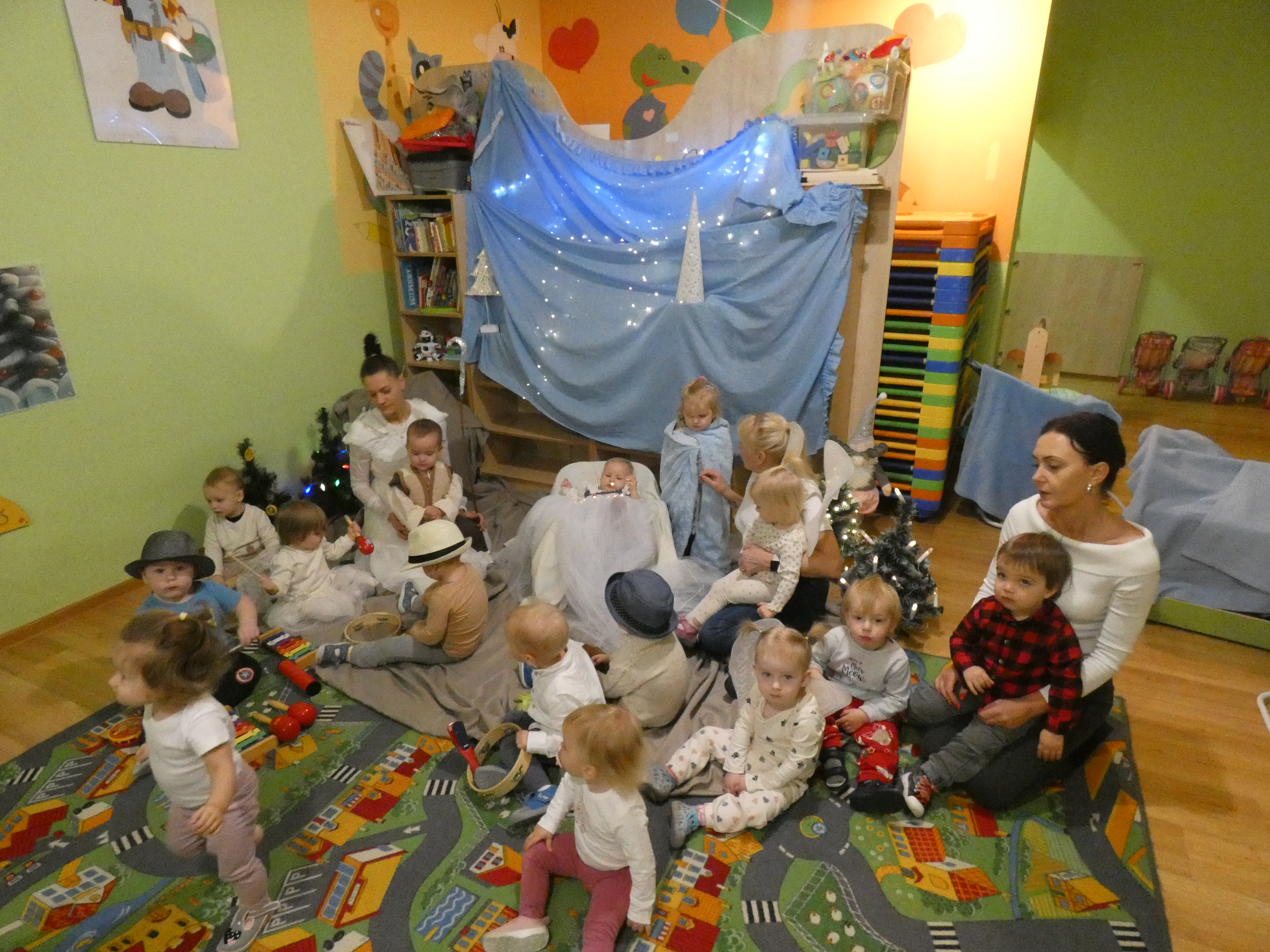 W ostatnich tygodniach w naszym żłobku działo się naprawdę dużo. Nasze sale zamieniły się w prawdziwą świąteczną krainę. Wspólnie z naszymi ciociami wykonaliśmy wiele pięknych prac plastycznych. Podczas spacerów podziwialiśmy pięknie udekorowany pucki rynek. Występowaliśmy rownież w jasełkach oraz odwiedziliśmy Urząd Miasta oraz Pucki Dom Pomocy Społecznej, gdzie złożlyliśmy świąteczne życzenia.