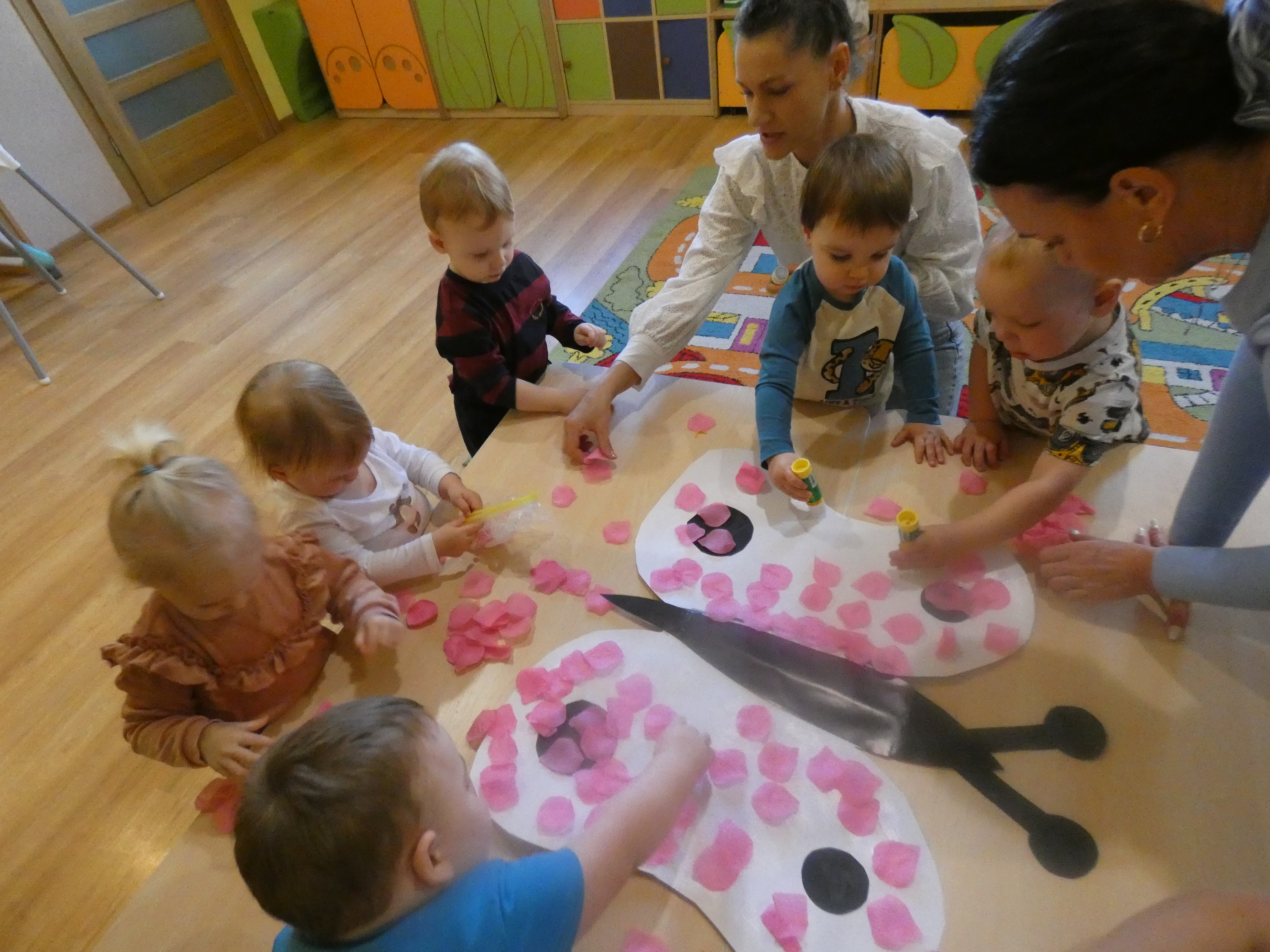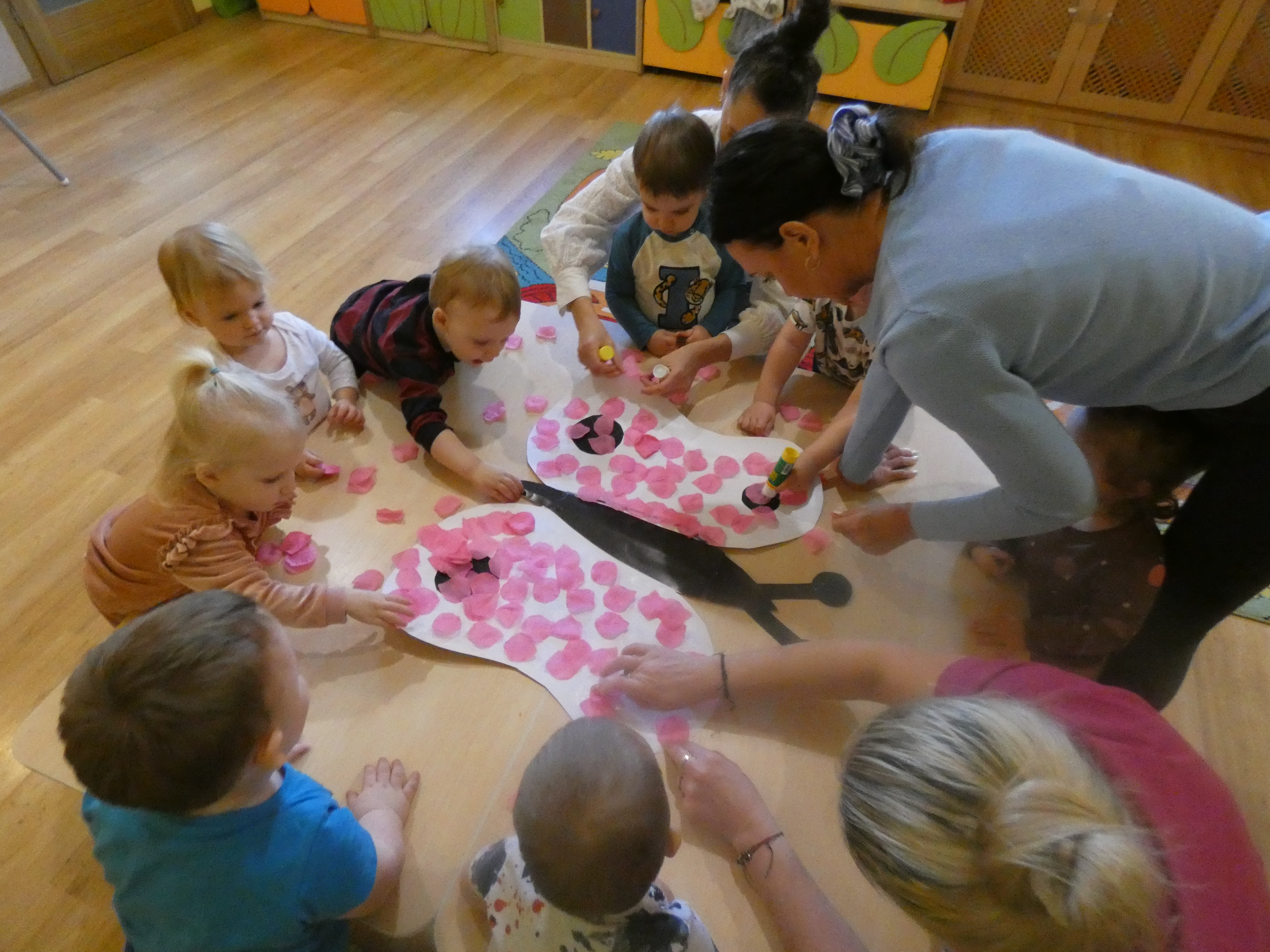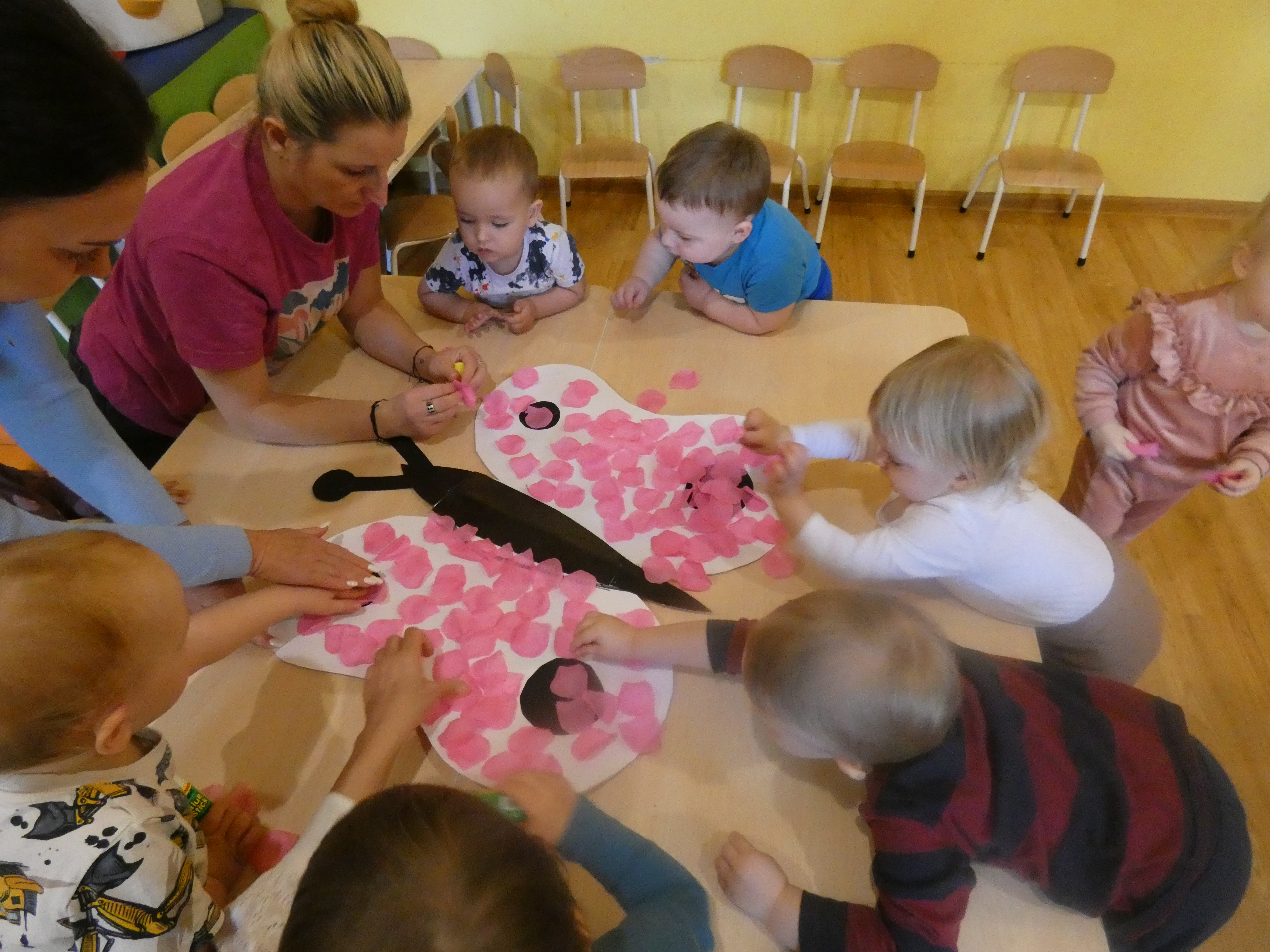 W ostatnim czasie obchodziliśmy Dzień Dentysty. Dzieciaki wykonały pracę plastyczna,oraz pokazano im jak dbać o ząbki i jak je myć. Obchodziliśmy również święto wszystkich naszych małych kobietek. Chłopcy stanęli na wysokości zadania i wręczyli im kwiatki. W dzień Motyla wykonaliśmy piękne skrzydła ptaka,by mógł unieść się bardzo wysoko.